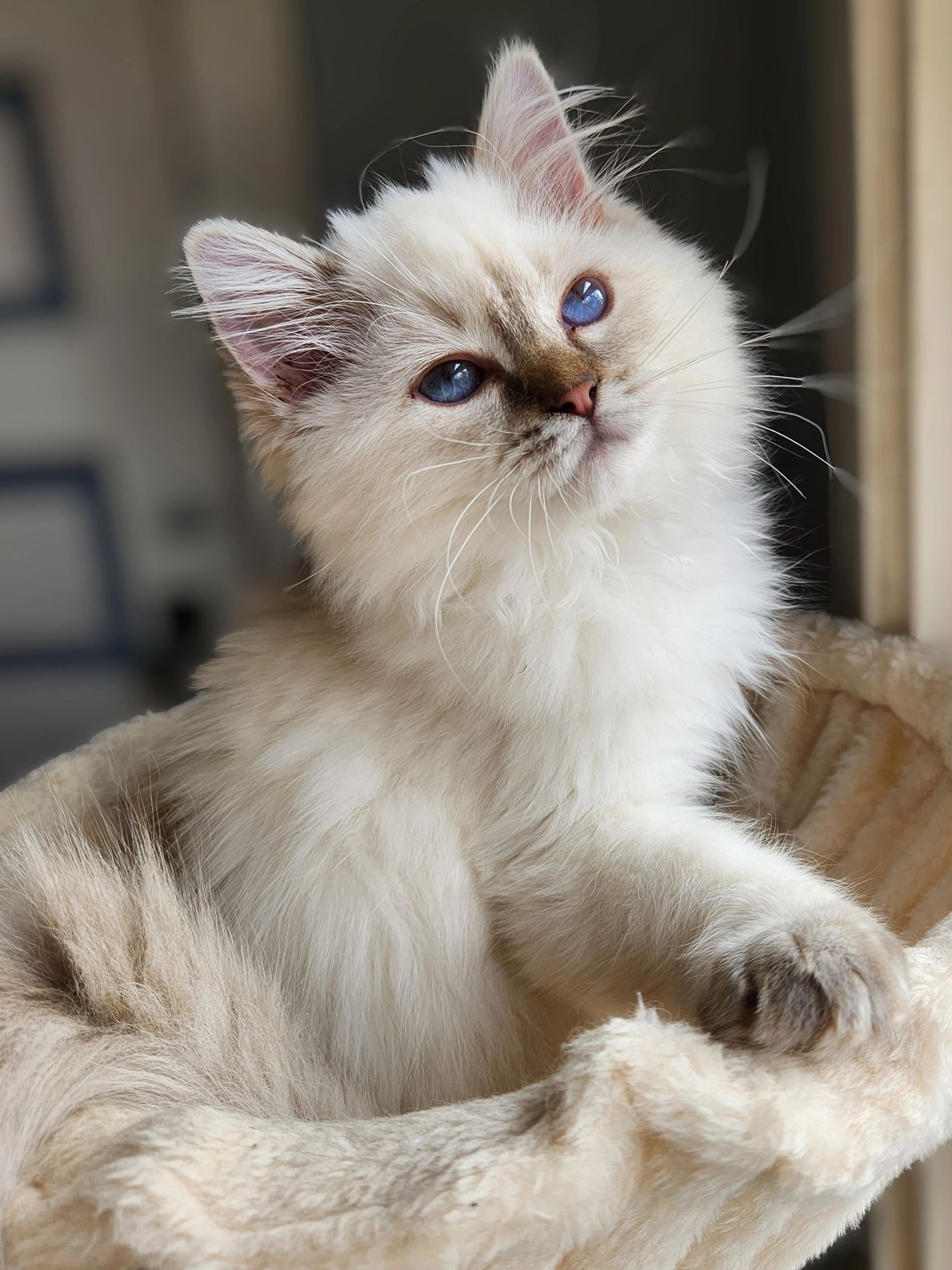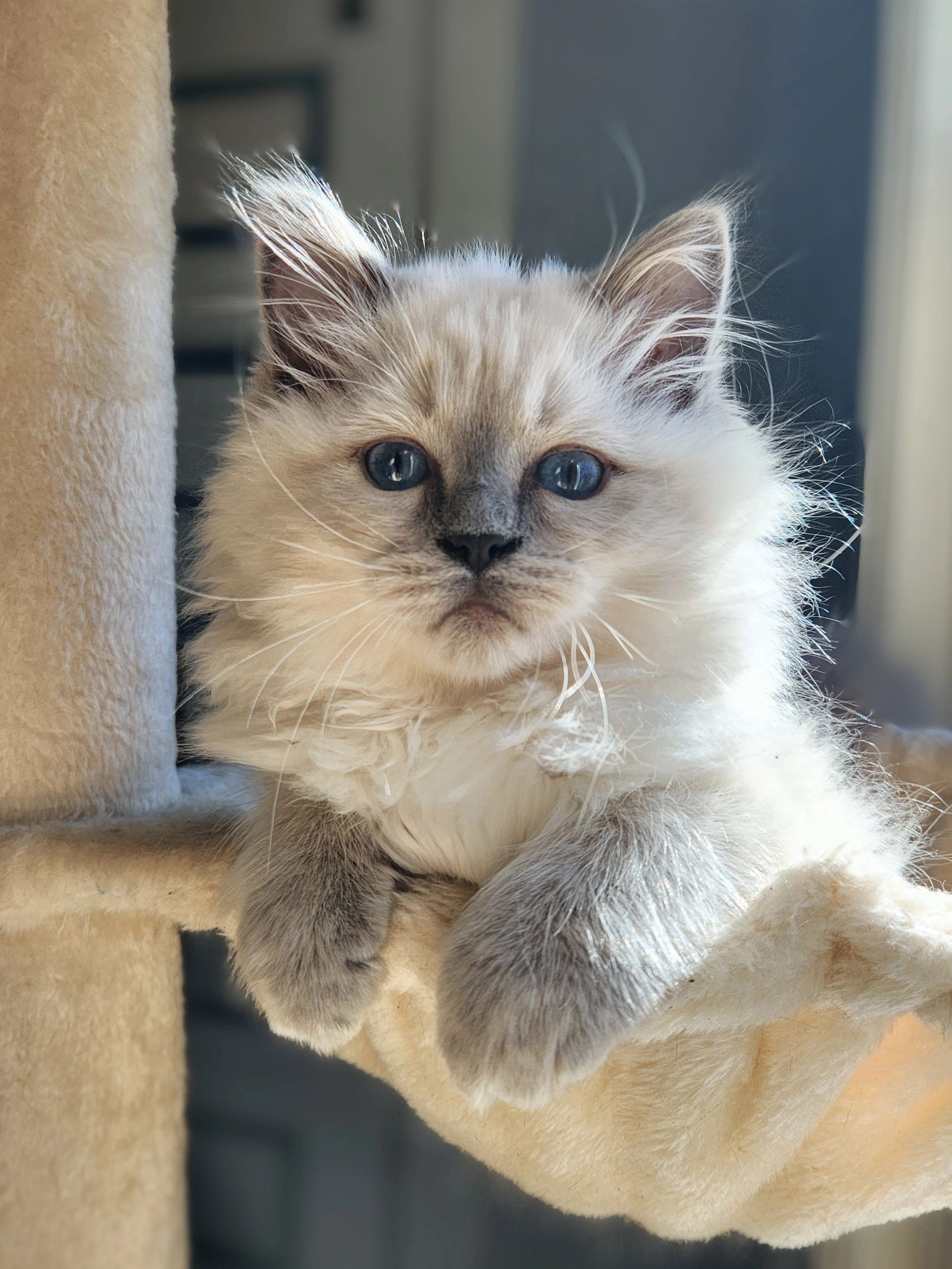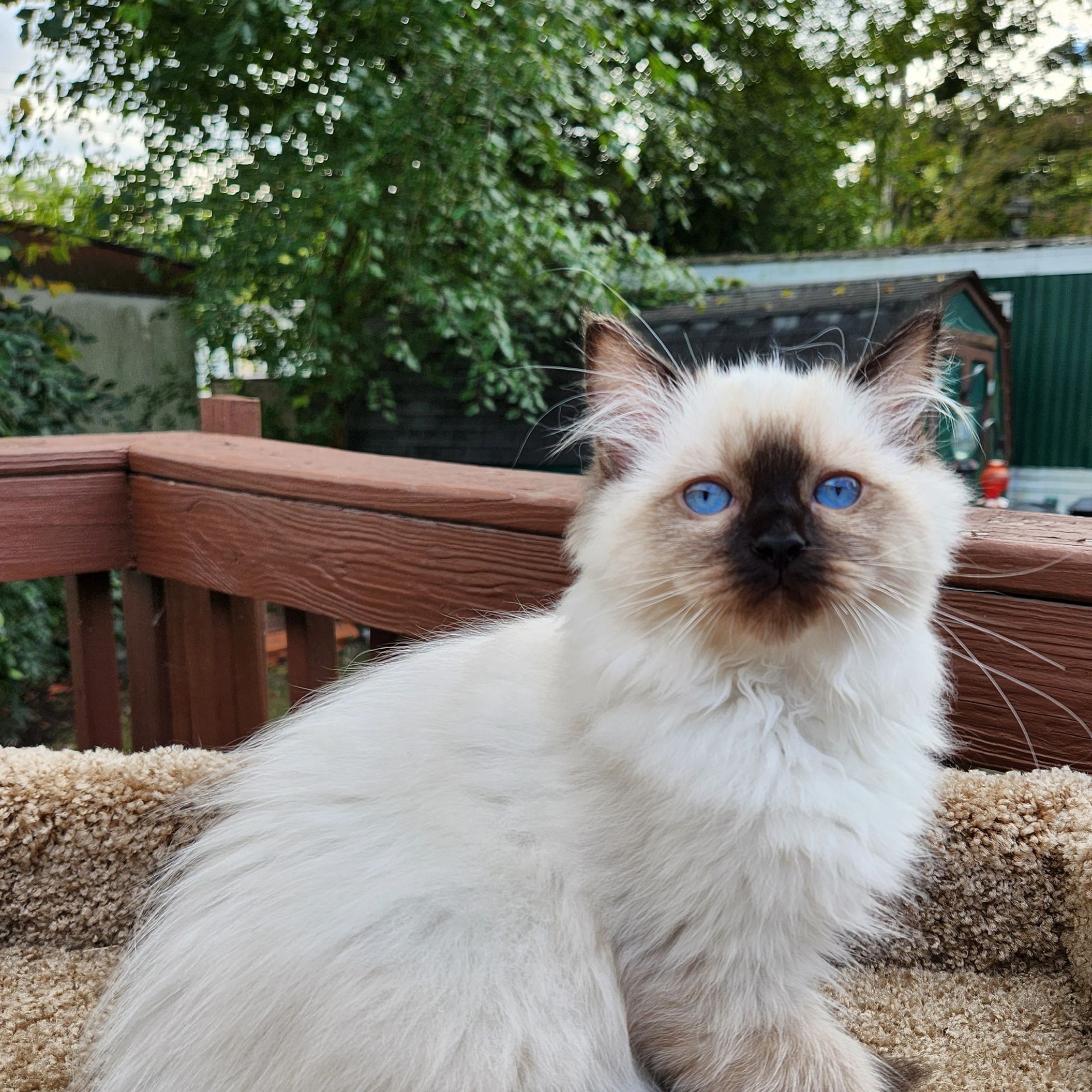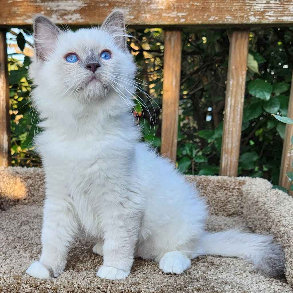 Blue point mitted girl, Rose. She is the little one but so big in personality. She is so much fun to watch as this girl is fearless. She loves attention and keeping her brothers in check.