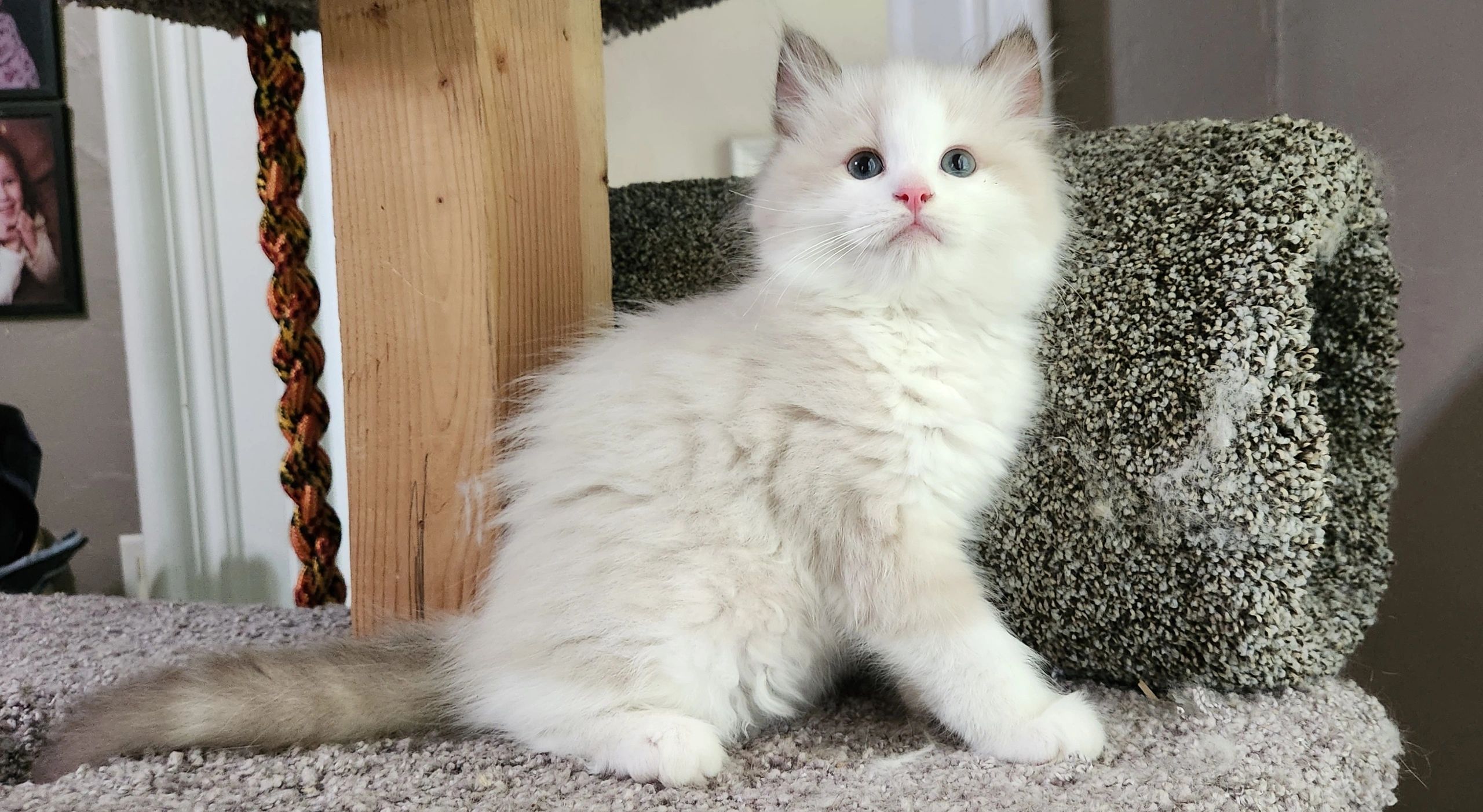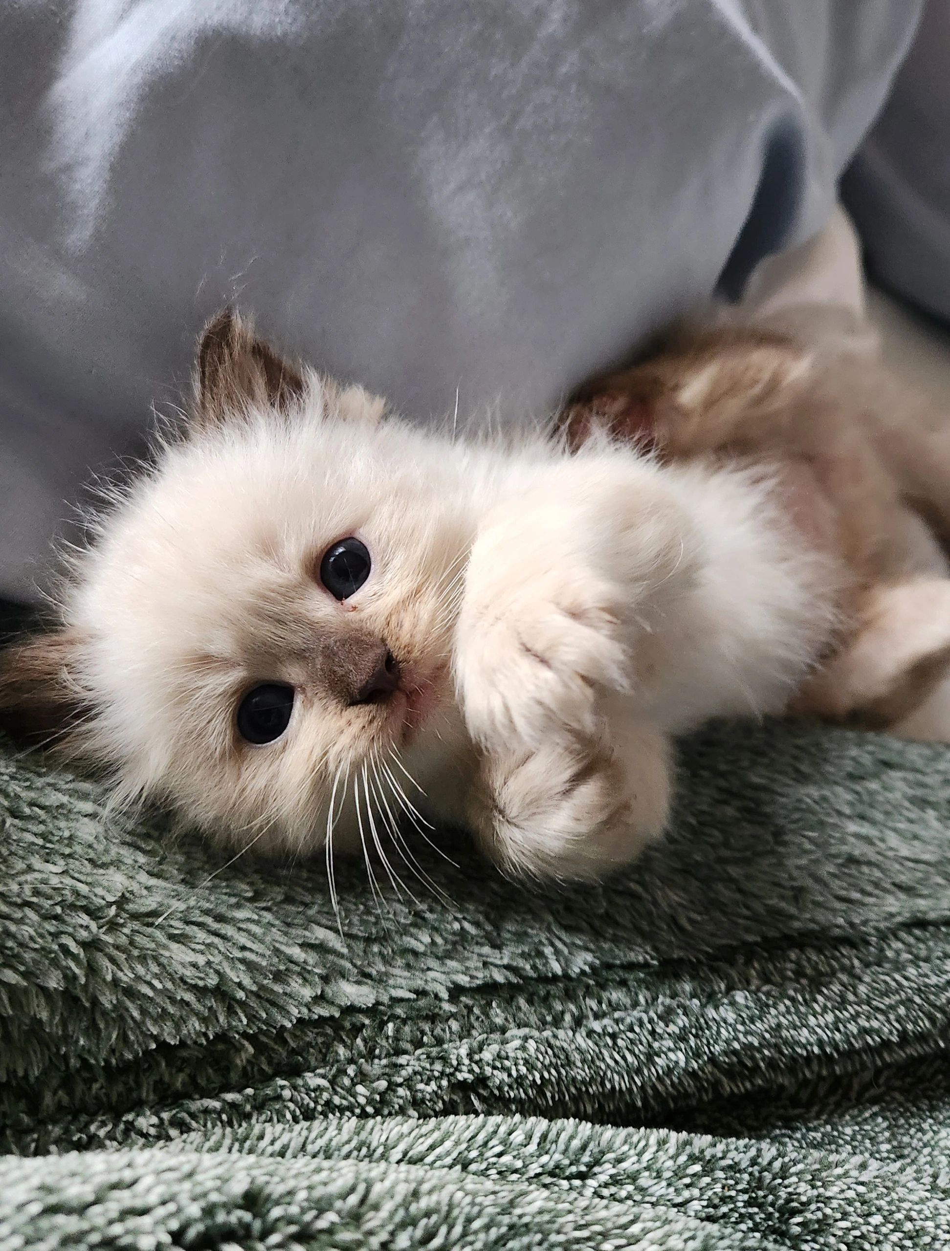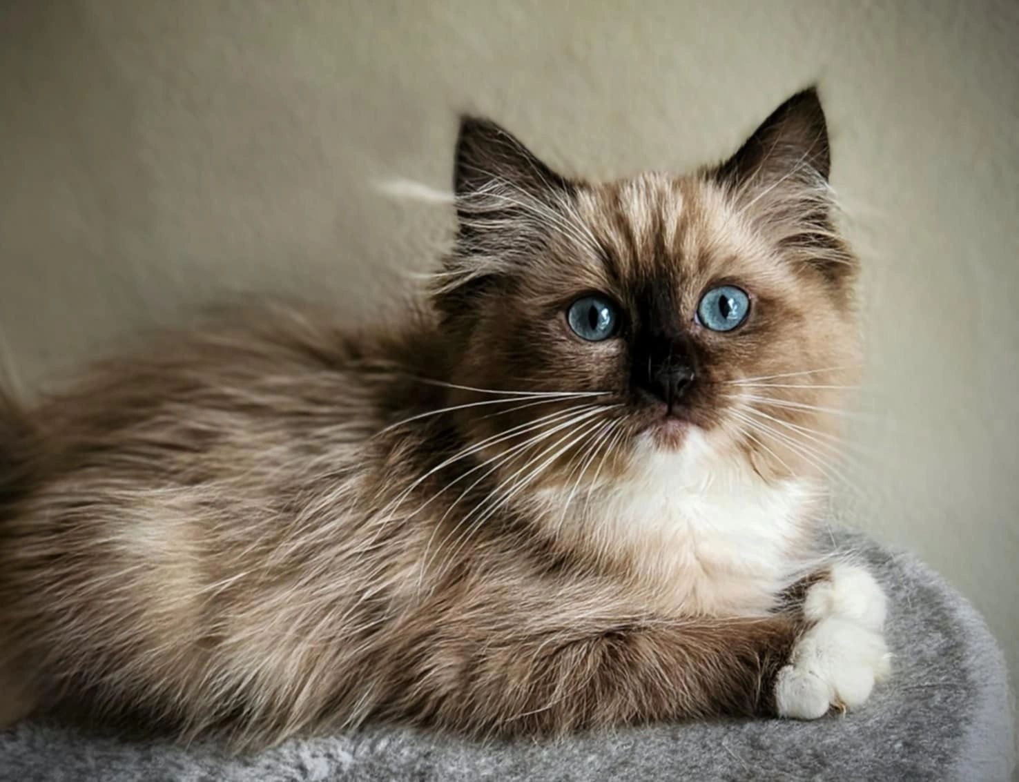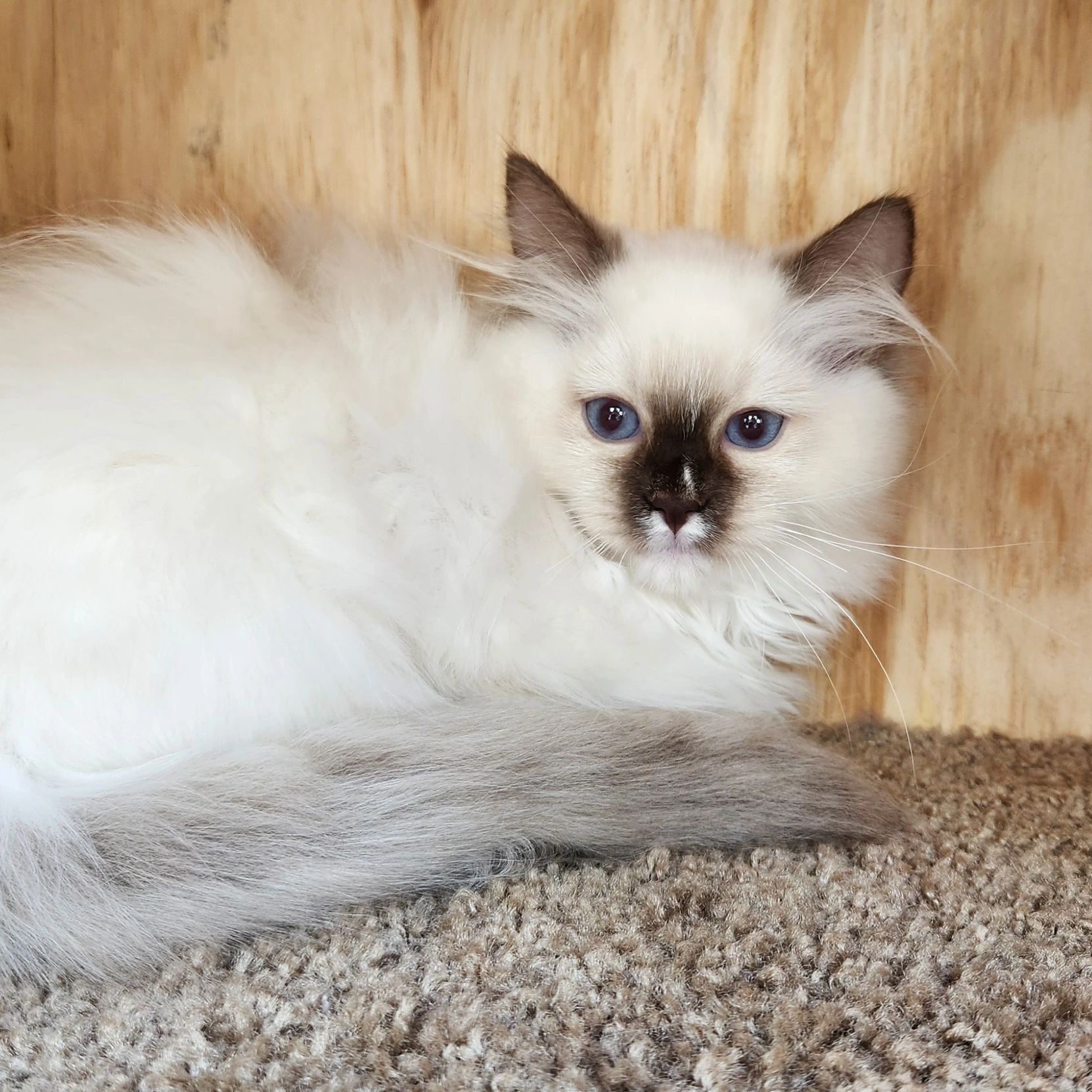 Blue point mitted girl, Rose. She is the little one but so big in personality. She is so much fun to watch as this girl is fearless. She loves attention and keeping her brothers in check.