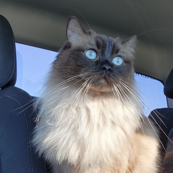 CastleReign Colors of the Wind, aka Pocahontas or Pokie. Blue point and our oldest current queen. She currently resides with my BFF Dawn and her husband Tim.